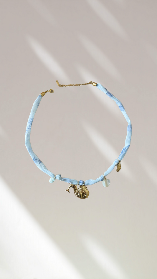Collier tissus bleu
